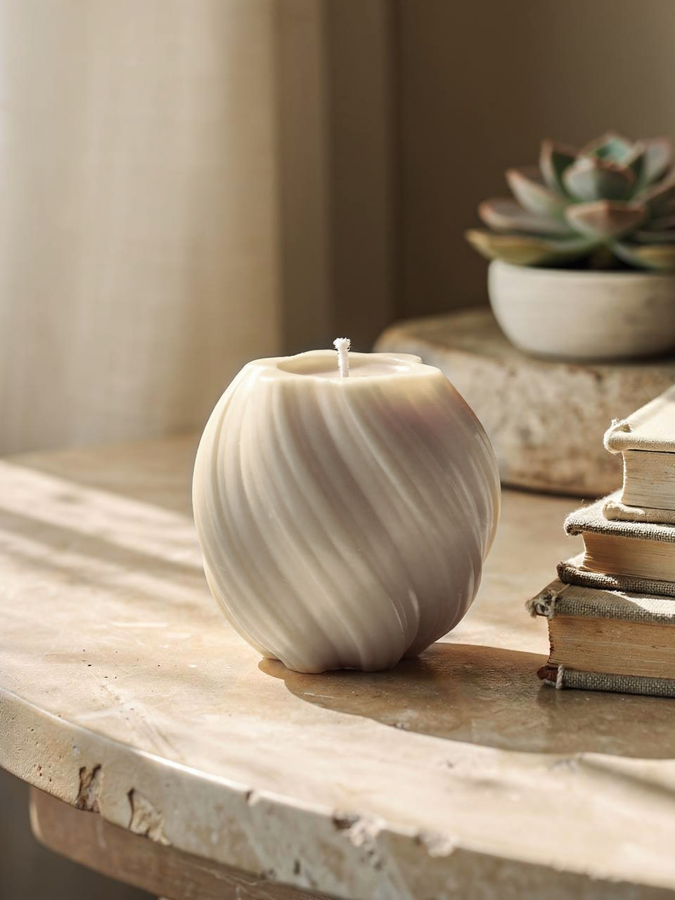 Velas Decorativas em forma de pilar torcido.