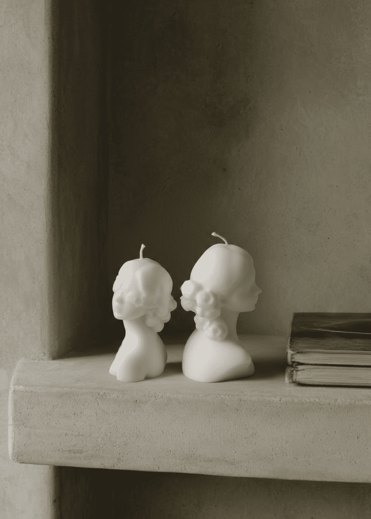 Cada vela é trabalhada manualmente com cera de soja sustentável e pavios de algodão, tornando-os não só decorativos, mas também funcionais.