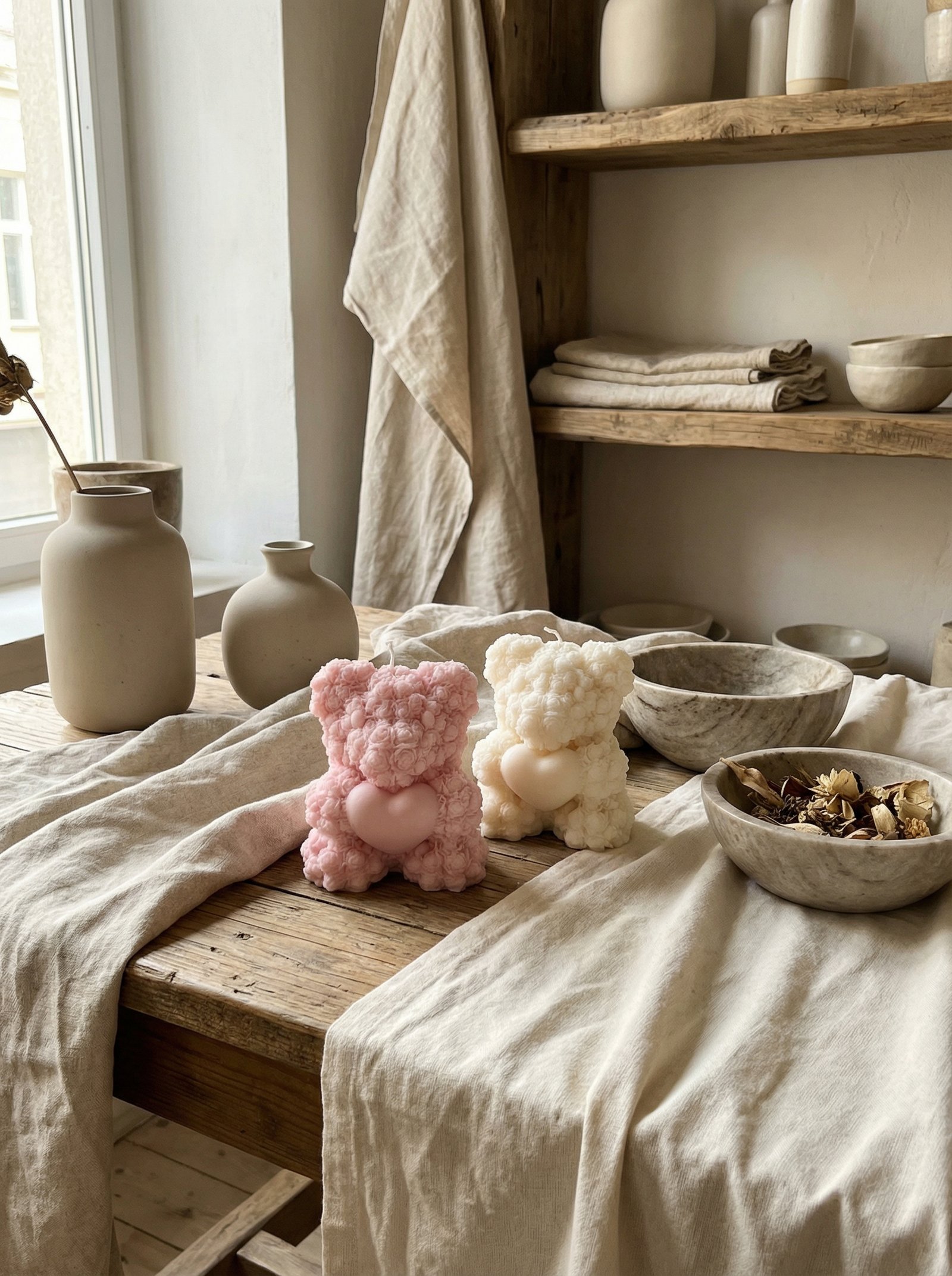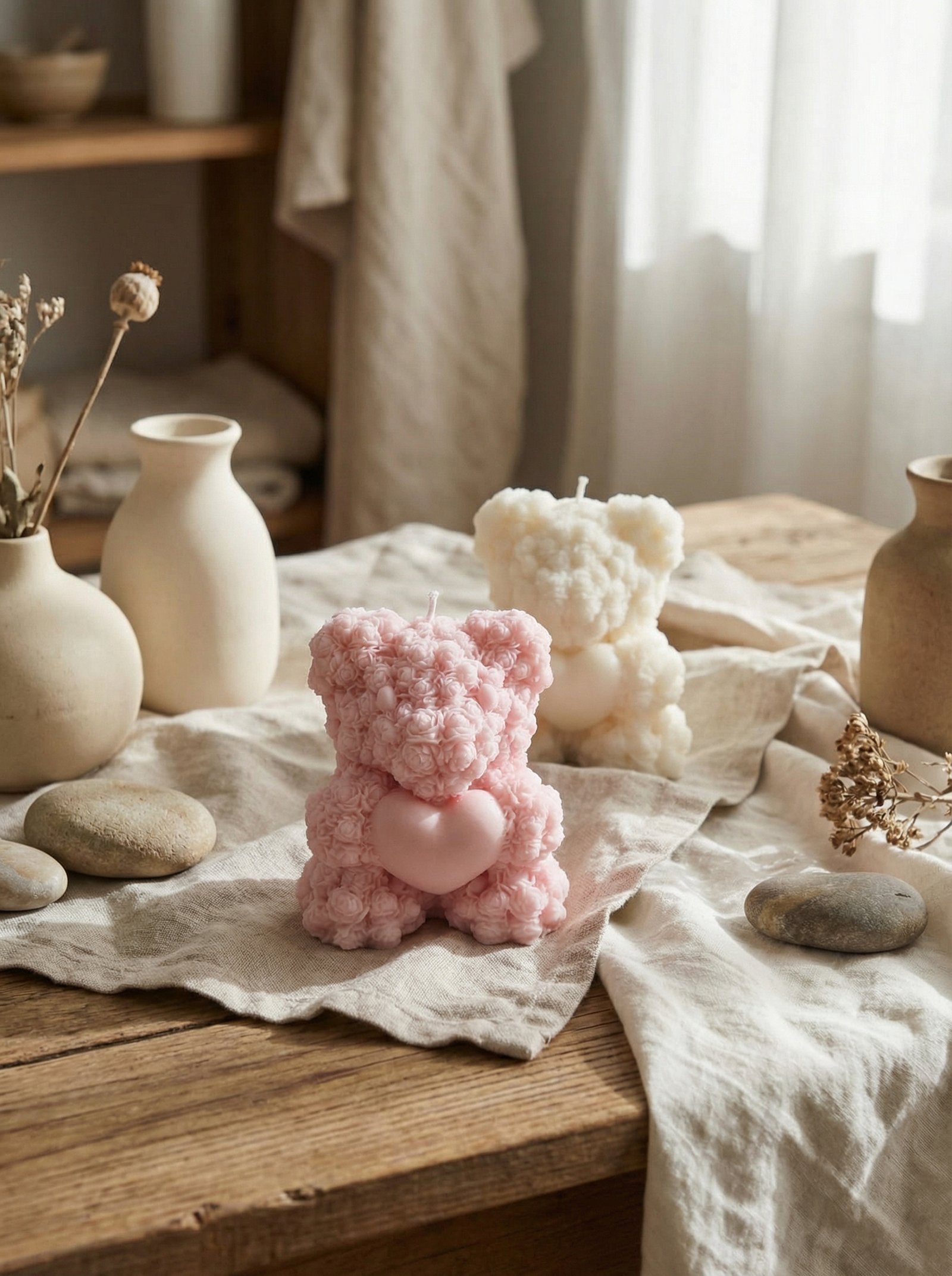 A nossa Vela Ursinho Artesanal Tender foi criada para quem procura adicionar um toque de ternura, conforto e delicadeza aos seus espaços. Com um design escultural inspirado na suavidade dos gestos afetivos e na estética minimalista, esta vela de ursinho artesanal combina uma presença doce com o requinte da produção manual, transformando qualquer ambiente num refúgio acolhedor.
